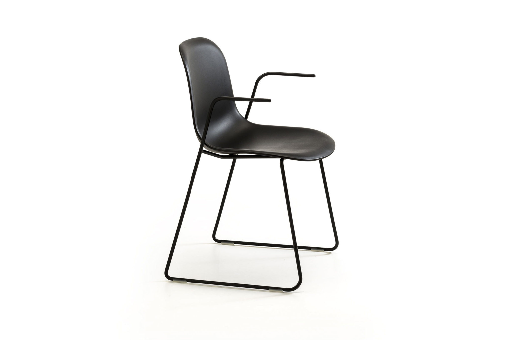 Chair with armrests with steel sled frame and shell in polypropylene. Fixed cushion or front upholstery available.