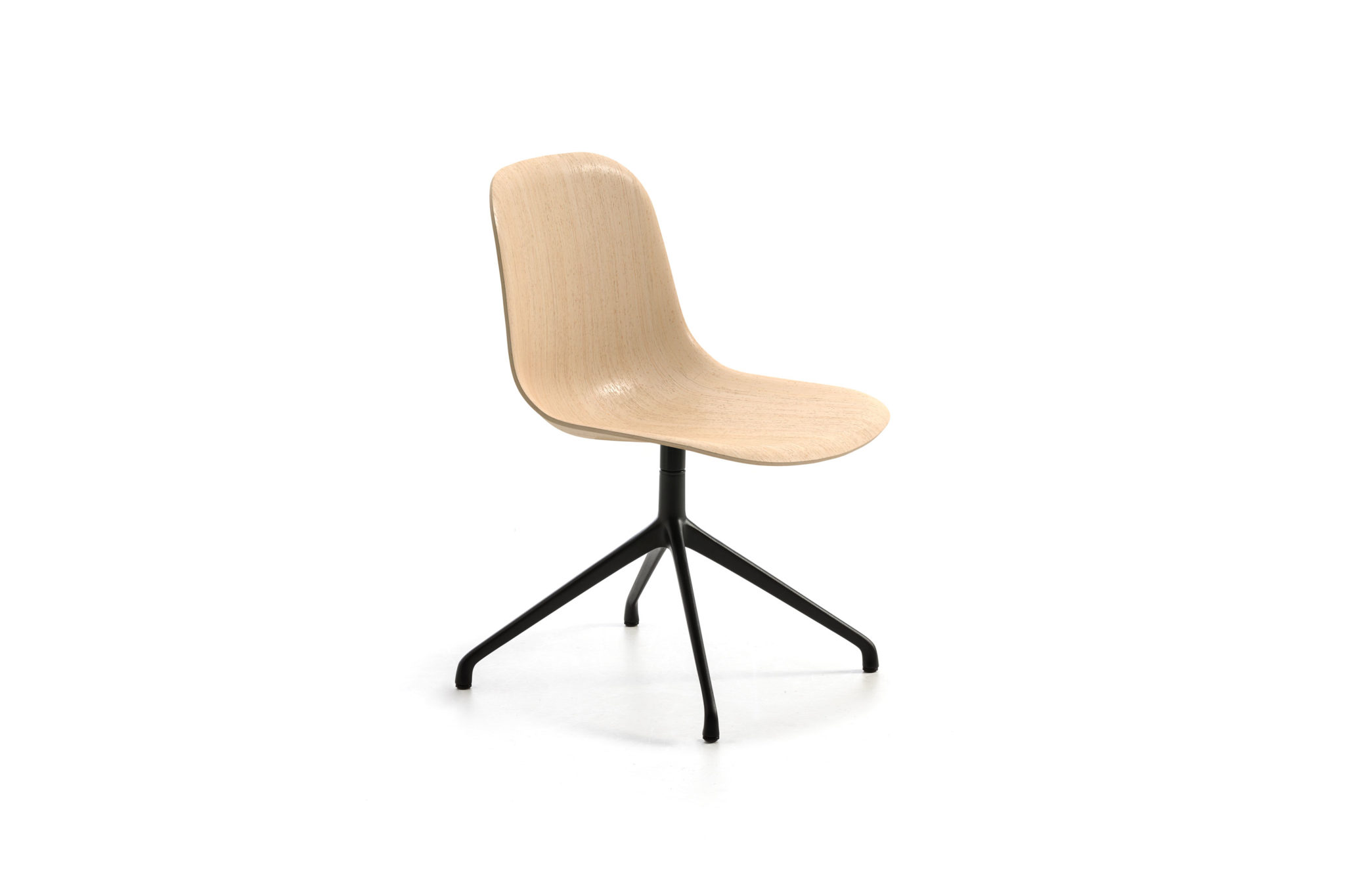 Swivel chair with 4-rays base made of polished or painted aluminum and 3D basic veneer shell. Fixed cushion available.