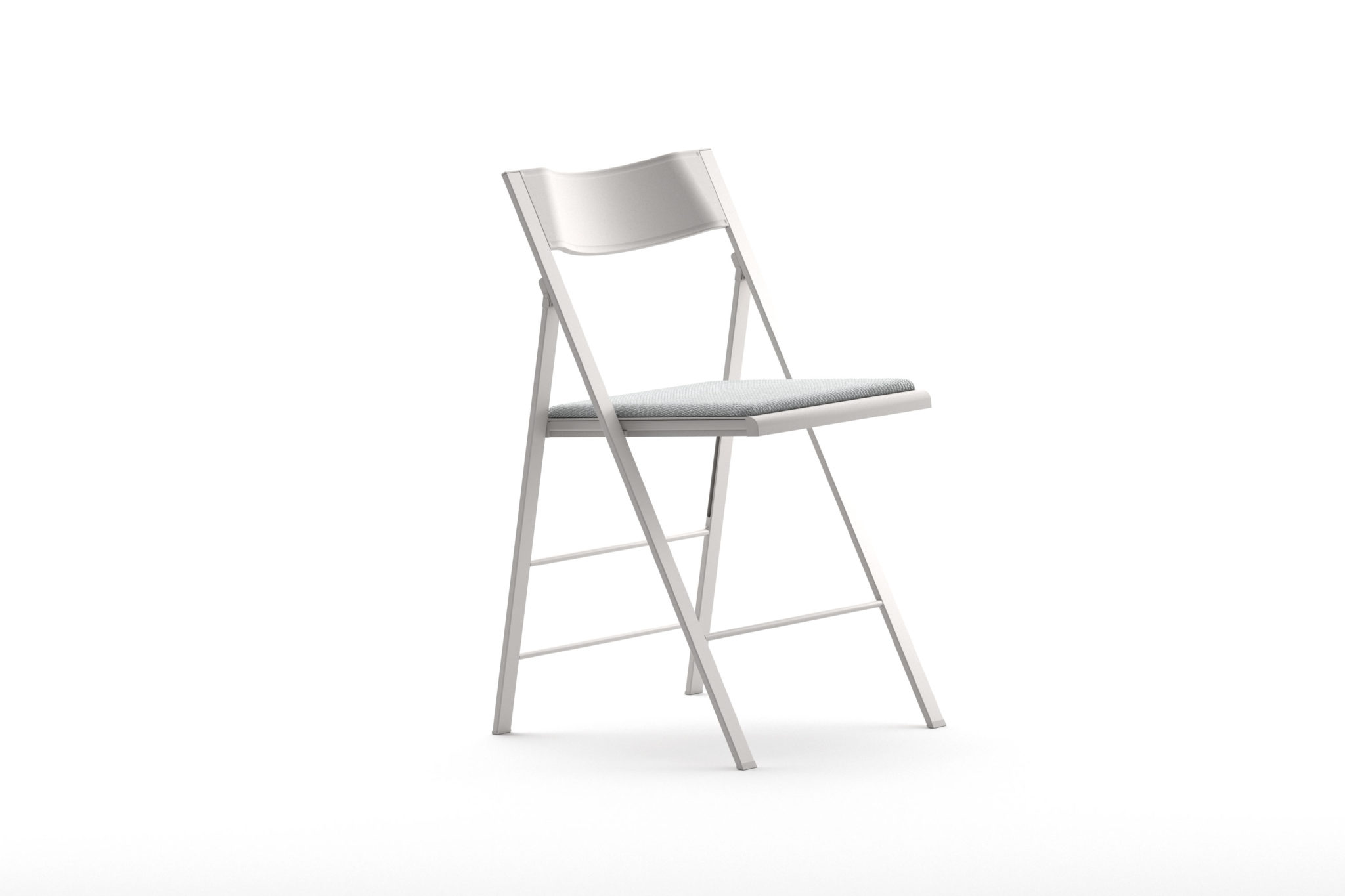 Folding chair with chromed or painted steel frame and polypropylene seat and back with fixed upholstered cushion with flame-retardant polyurethane foam.
