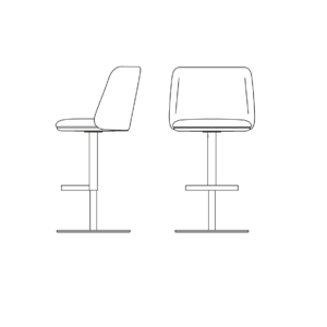 Swivel and self-aligning stool. Chromed or painted frame. Diam. 45 cm base. Beech plywood seat and backrest with flame-retardant polyurethane foam, upholstered.