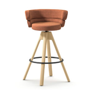 A. To enhance the armchair’s performance and ergonomics even further and also to nudge the stool in the fashion direction suggested by our partners, the architects. More specifically, a third ring has been added to the armchair which provides greater support for the back; this means greater comfort for people who spend long hours in the same position as happens in meeting rooms or work areas in a typical corporate environment, but not only for these. The stool, which previously rested on a single, rather technical, central base, is now also accompanied by a warmer, more versatile version with swivel wood base, which can be customised by choosing from the many types of wood and finishes available, giving interior designers more options to play with.