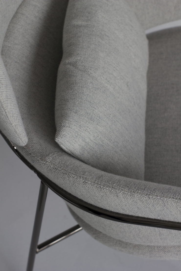 The clear and simple metal frame lines meet the rounded upholstered elements. This meeting generates Kiyumi Lounge for contract and home, In perfect balance between design and tradition.