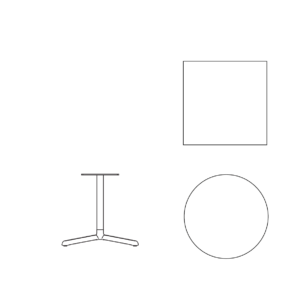 Struttura in alluminio pressofuso, h 48 cm, lucidato o verniciato, abbinabile a piani tondi o quadrati fino a d80/80×80 cm (piano in marmo solo fino a d70/70×70 cm). Disponibile con trattamento per esterno.