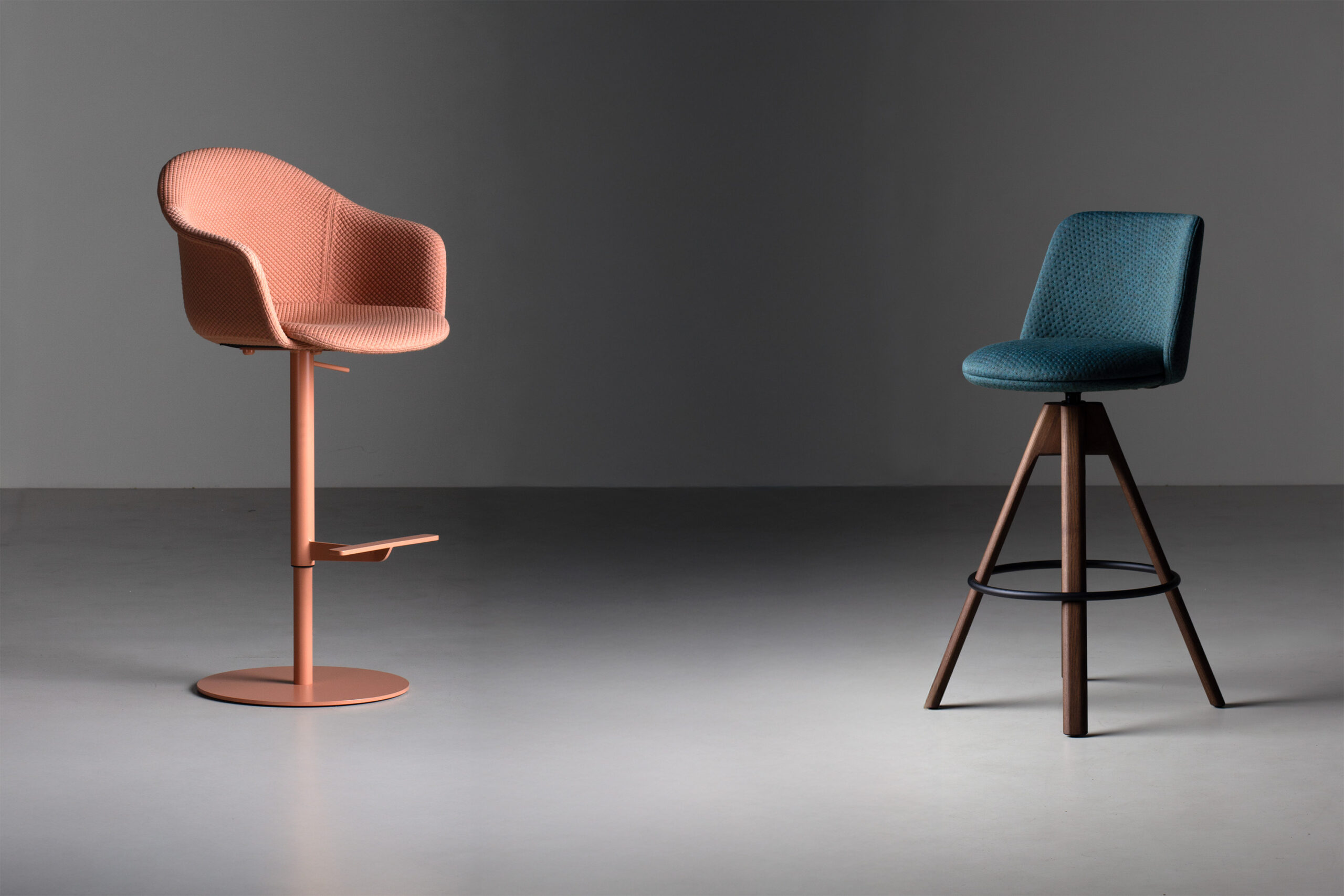 Linee morbide, finitura geometrica monocromatica e una palette decisa per MANI ARMSHELL ST SA colore corallo naturale, sgabello autoallineante,